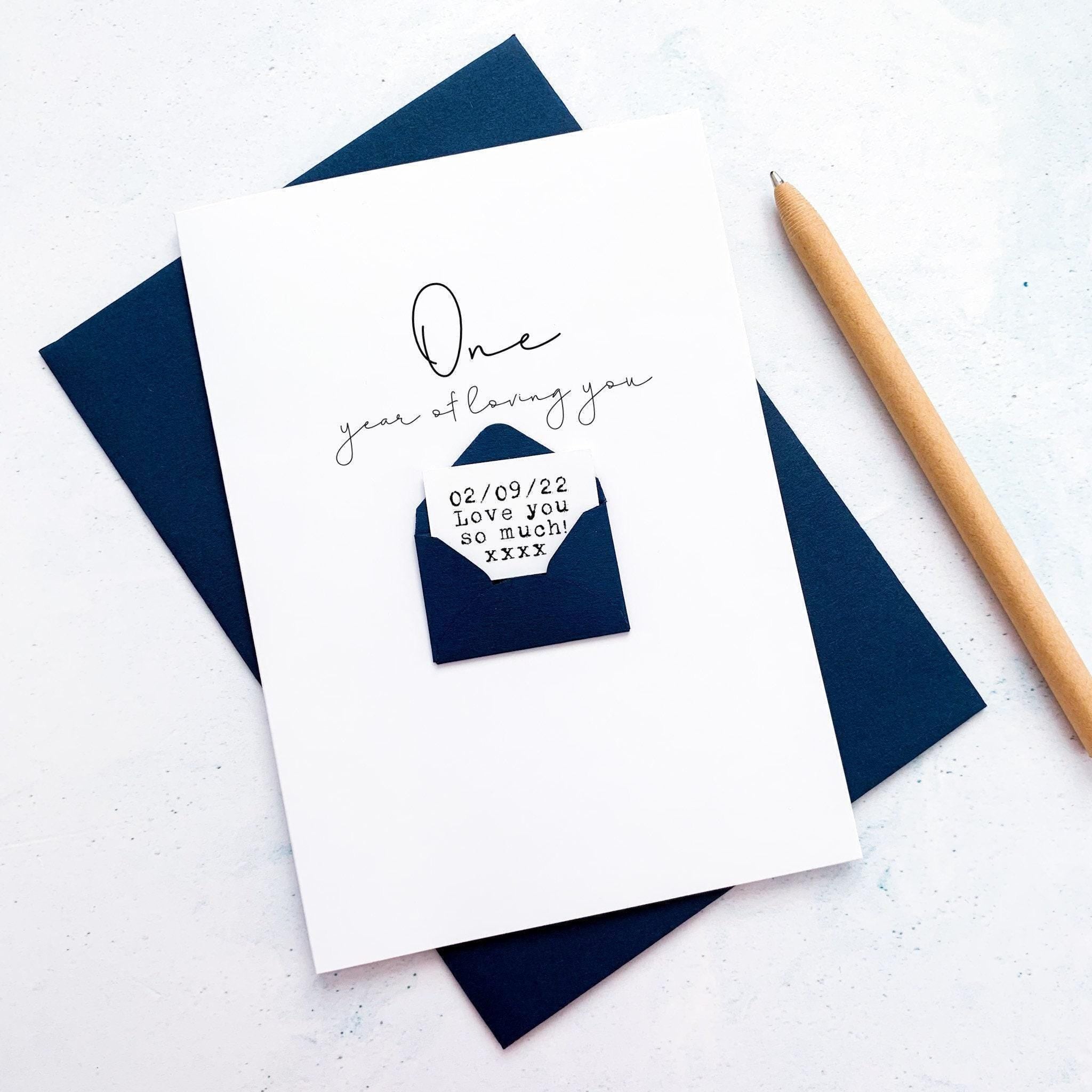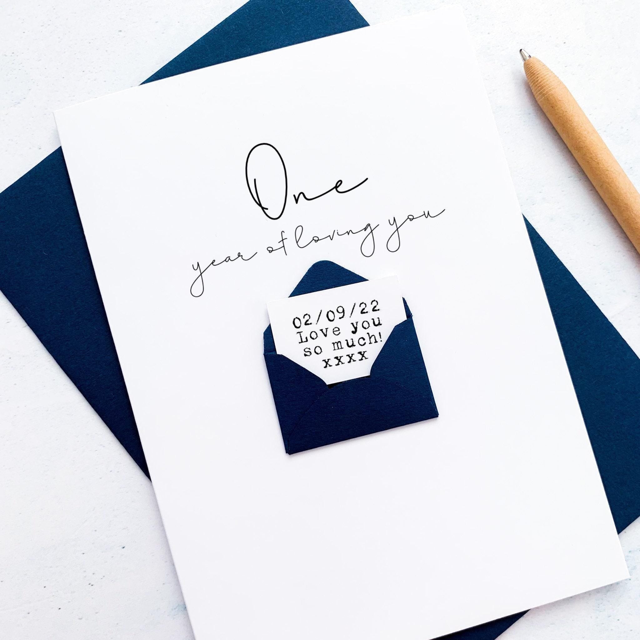 Your special date or message is hidden inside a mini handmade envelope. A romantic keepsake gift to celebrate 1 year of loving your partner, or customise with other years (2 years, 3 years etc).