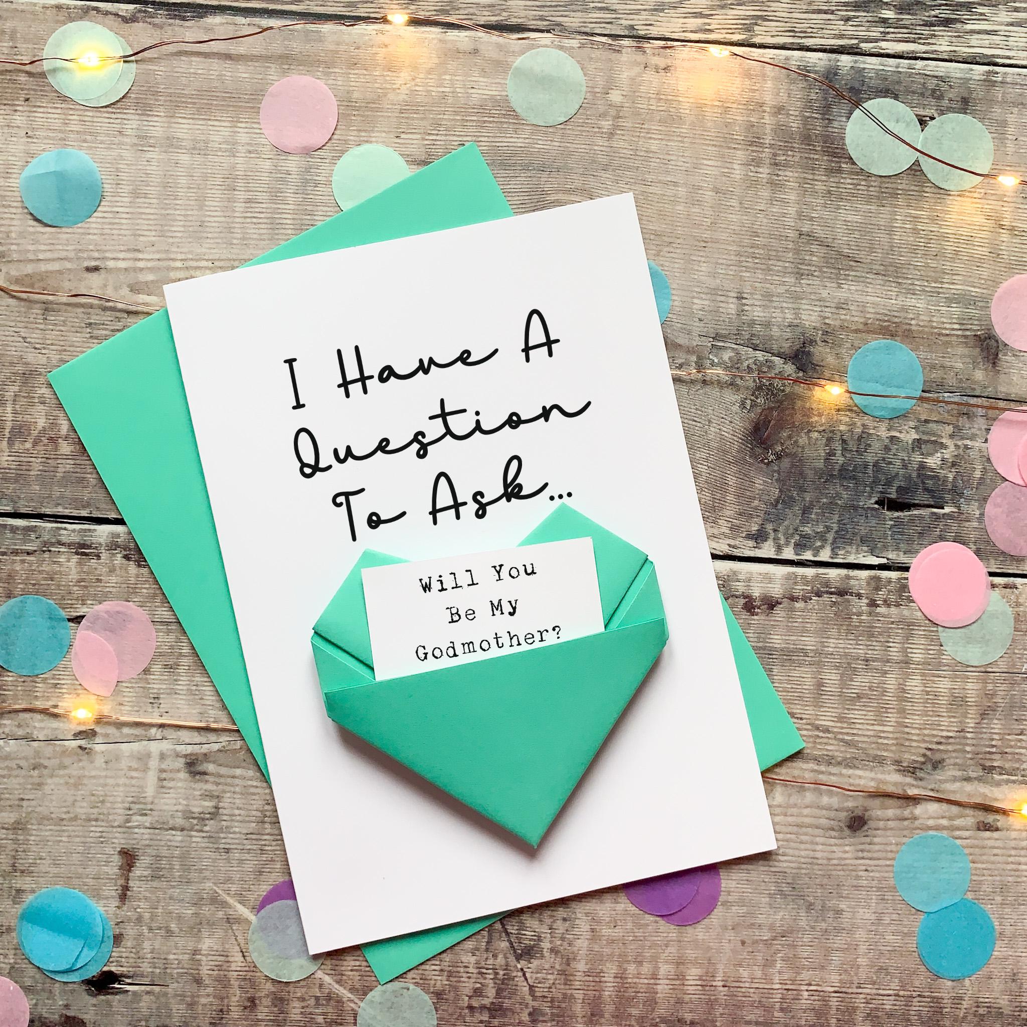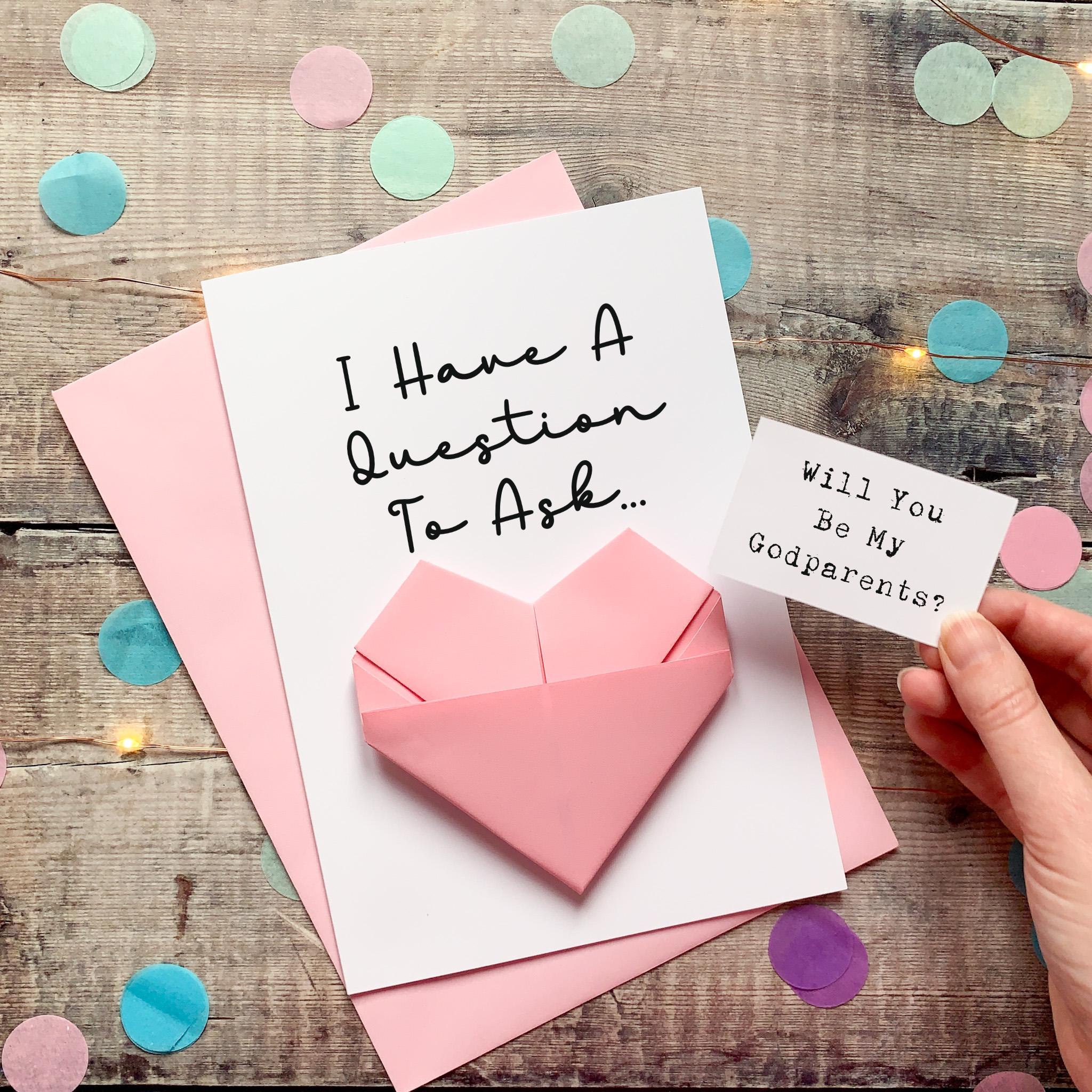 This godparent proposal card offers a heartfelt and unique way to ask someone special to become a godparent, featuring a handmade origami heart keepsake that creates a lasting memory. Crafted as a personalised proposal card, it combines thoughtful design with meaningful sentiment to ensure your loved one feels truly cherished. Perfect as a baby announcement card or custom godparent gift, this card brings together quality materials and emotional connection in one beautiful package.
